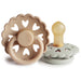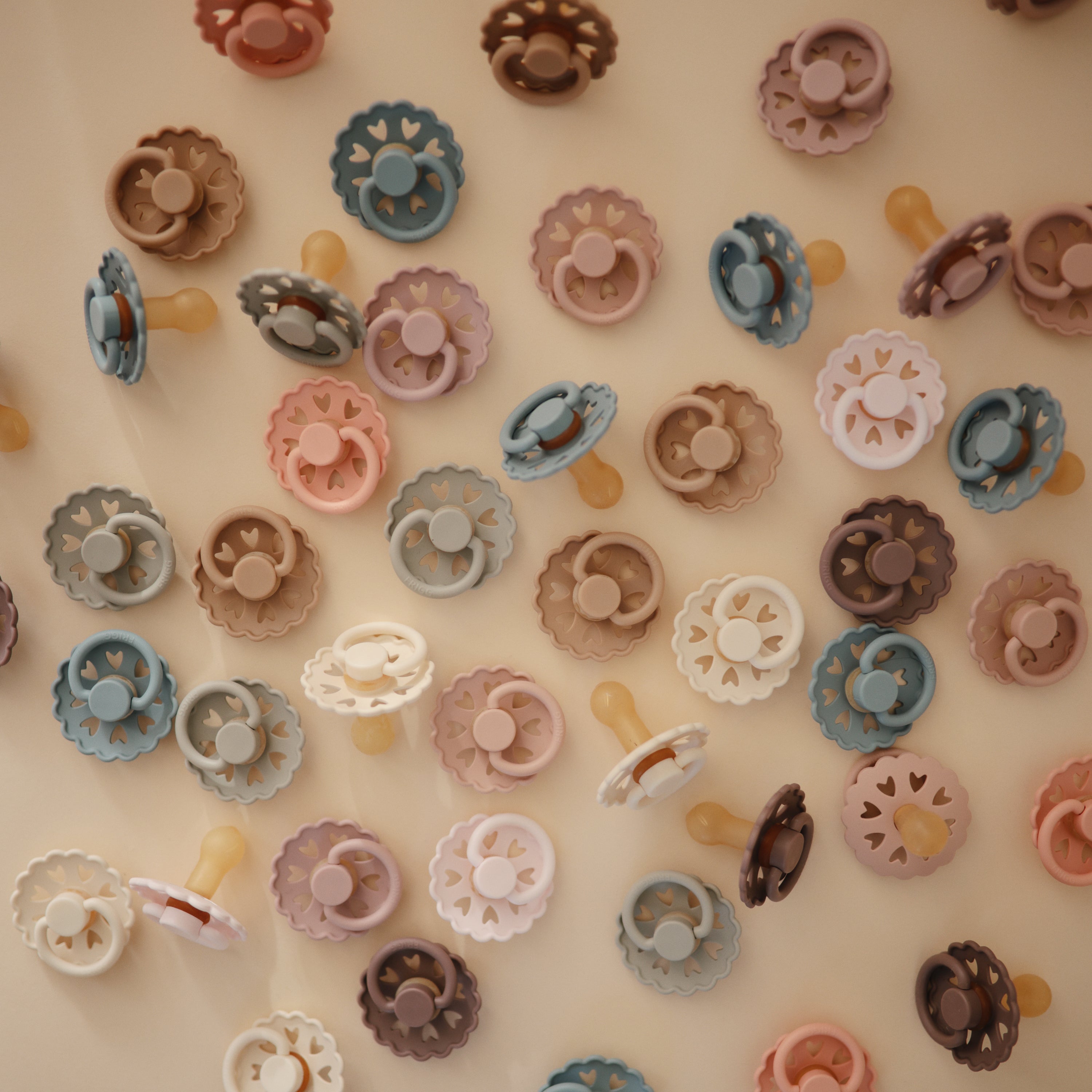 The FRIGG Fairytale rubber pacifiers are thoughtfully designed for your baby's comfort with natural latex and soothing properties. Each pacifier color draws inspiration from a timeless story by Danish author Hans Christian Andersen. The outward curve keeps the pacifier off delicate skin while features like air holes and a security handle ensure your baby's safety. Within the pacifier shield, air holes reveal eight little hearts that recreate Andersen's carved artwork motif and symbolize the universal language of love.