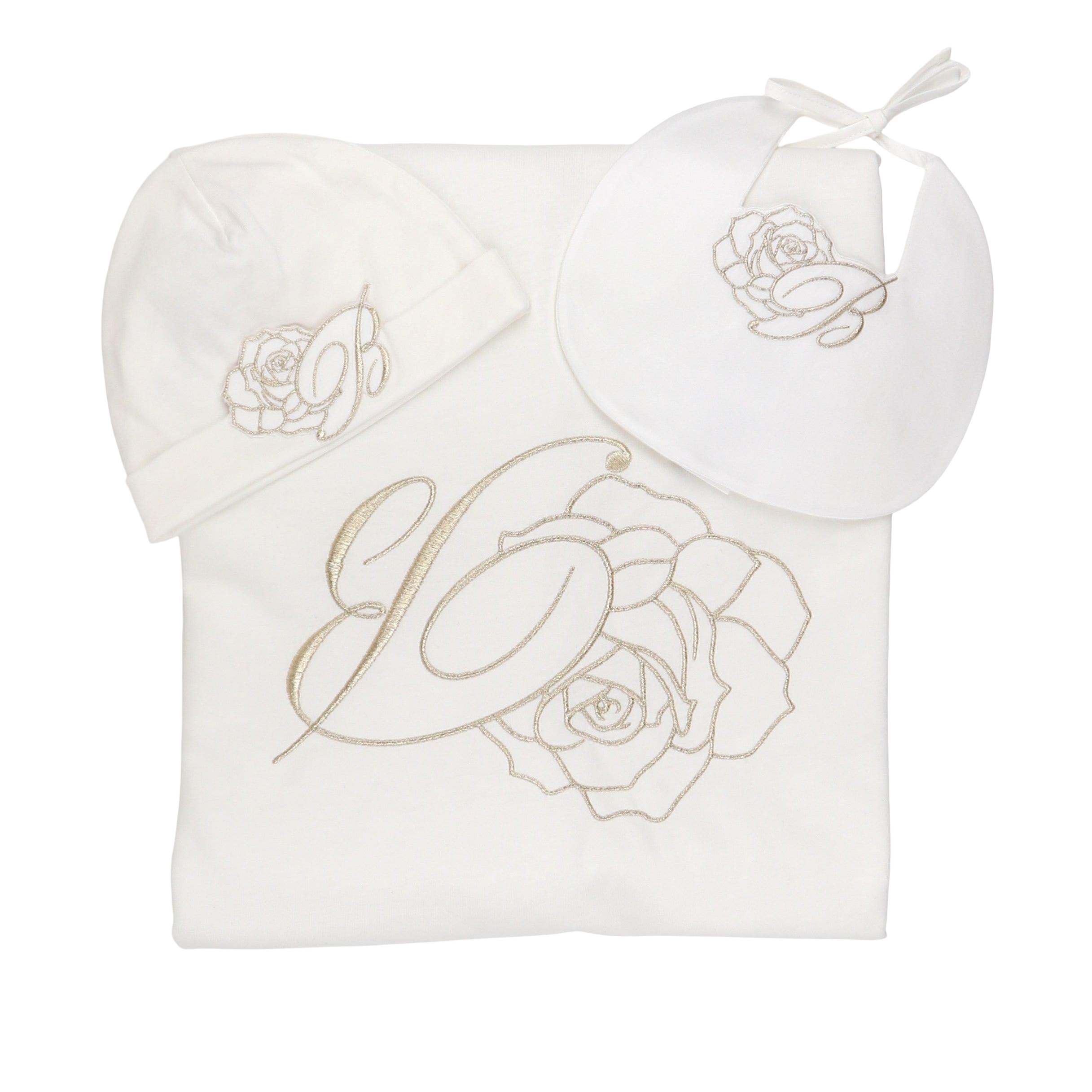 MB BNTU008 LS Embroidered Blanket hat bib Set