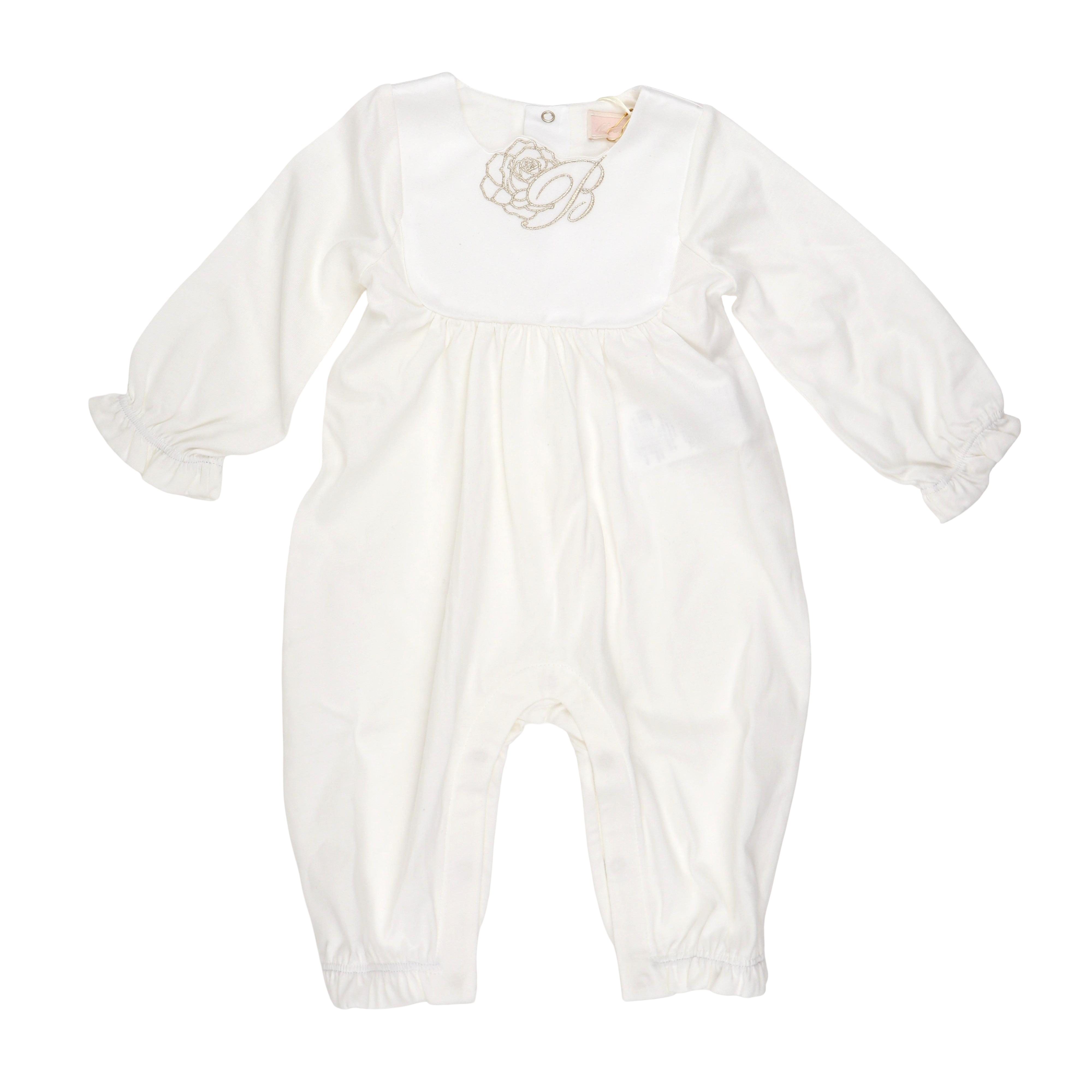 MB BNTU008 LS Embroidered Romper W Bib