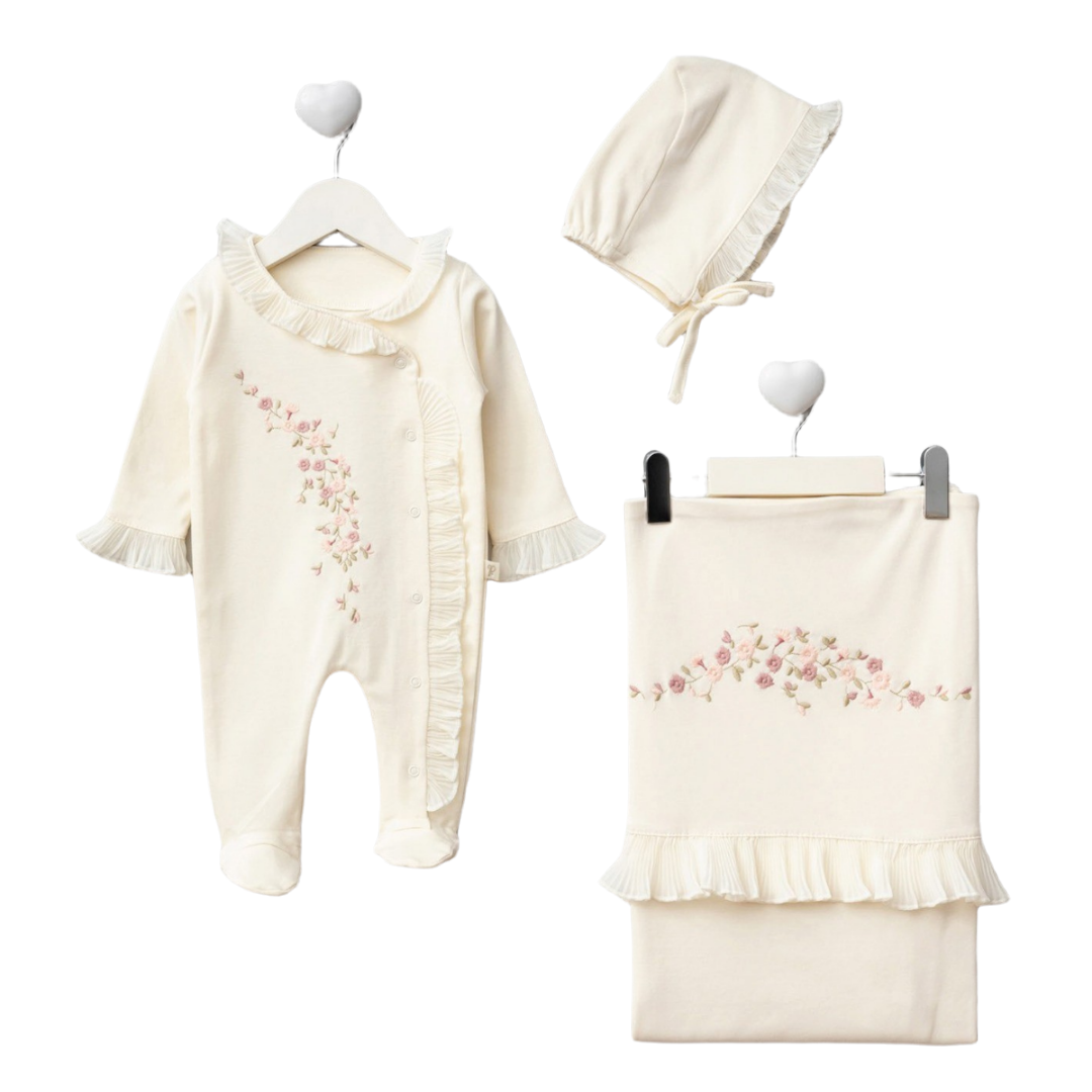 Omnis Pura Ruffled Romper & Blanket Set 0-3M