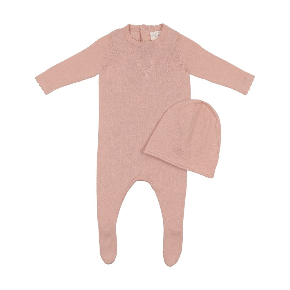Peluche Signature Knit Footie & Beanie Blush